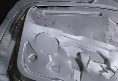 1、涂油檢驗:用干凈的紗布將外覆蓋件的表面擦干凈。再用干凈的刷子沿著同一個方向均勻地涂油至沖壓件的整個外表面。把涂完油的沖壓件放在強光下檢驗,建議把沖壓件豎在車身位置上。用此法可很容易地發(fā)現(xiàn)沖壓件上的微小的麻點、癟塘、波紋。